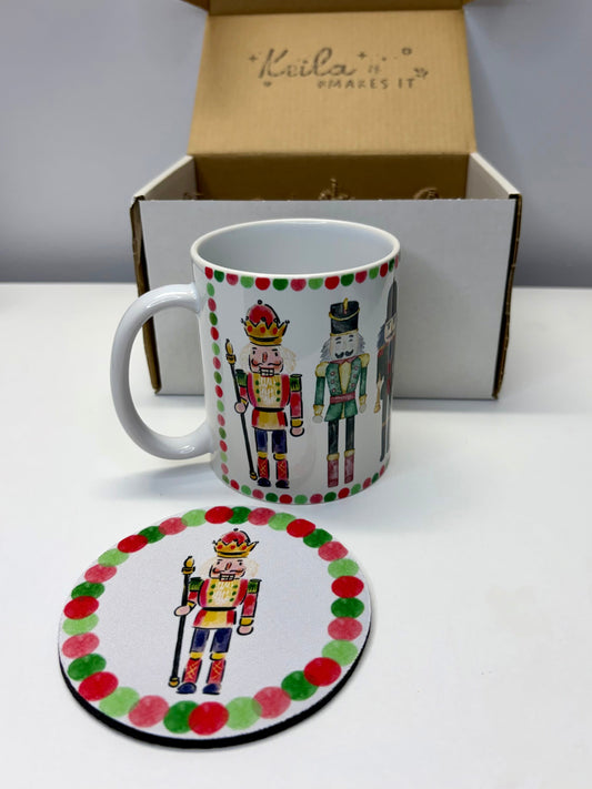 Christmas Nutcracker Mug & Coaster Gift Set – Festive 11oz Ceramic Mug + Matching Coaster | Holiday Coffee Gift Box