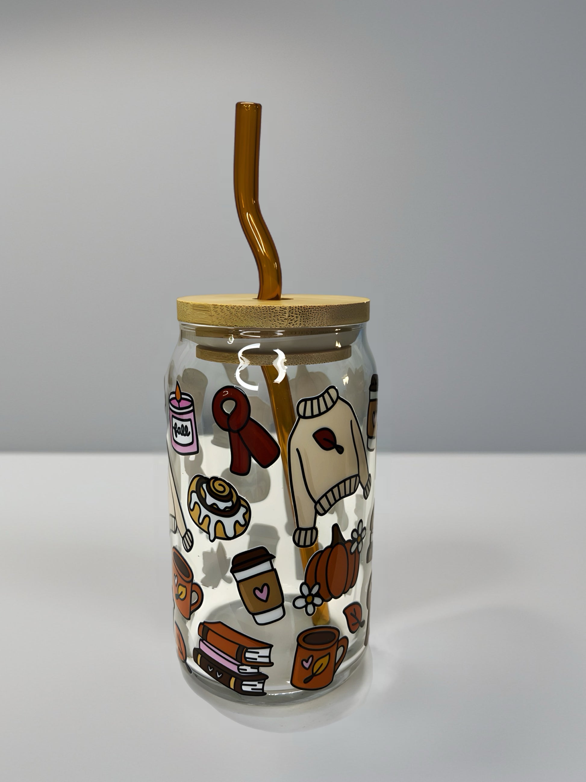 Bring fall everywhere you go with this cozy and reusable glass cup! 🍁